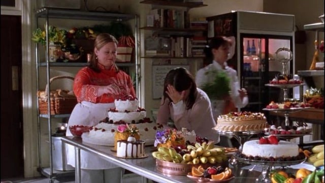 Από το τεράστιο σπίτι που μένουν το πρωταγωνιστικό ντουέτο μάνα-κόρη μέχρι το εσωτερικό του βιβλιοπωλείου του χωριού (που ζήτημα να το βλέπουμε συνολικά σε 3-4 σκηνές σε όλη τη σειρά), σκηνογραφικά υπάρχει μια υπερβολή στο Stars Hollow. Ακόμα και σε μέρη που πρέπει να φαίνονται λειτουργικά — όπως η κουζίνα του ξενοδοχείου Independence Inn που τρέχει η σεφ Σούκι Σεντ Τζέιμς. Φρέσκα φρούτα και λαχανικά παντού, εργαλεία μαγειρικής, κατσαρόλες, μάγειρες, όλα συμπυκνωμένα σε ένα κάδρο.